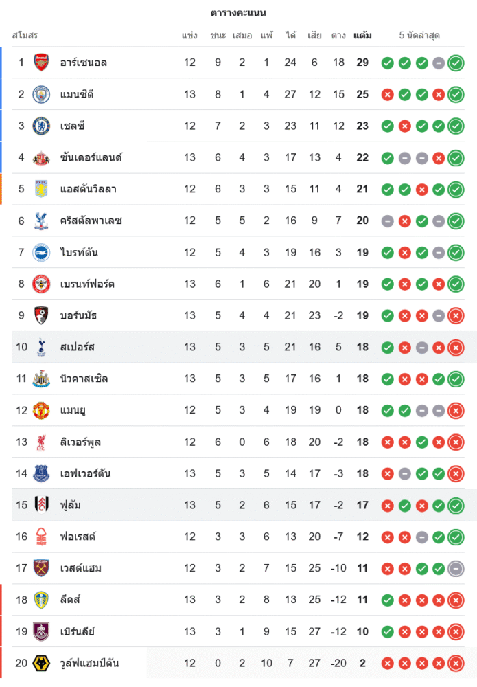 🧮 สถานการณ์ในตารางคะแนนพรีเมียร์ลีก