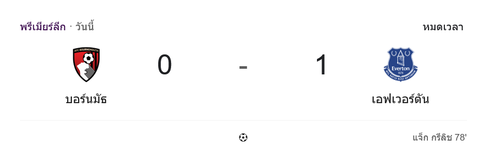 จาก : ผลบอลสด พรีเมียร์ลีก ระหว่าง บอร์นมัธ เอเอฟซี 0-1 เอฟเวอร์ตัน วันนี้ 3/12/68 – บ้านกีฬา