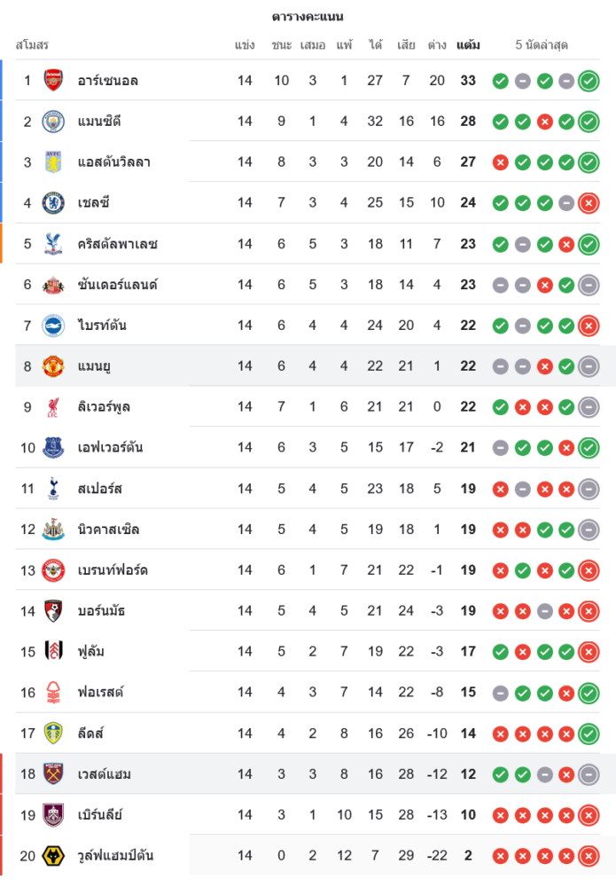 📈 สถานการณ์ในตารางคะแนนพรีเมียร์ลีก