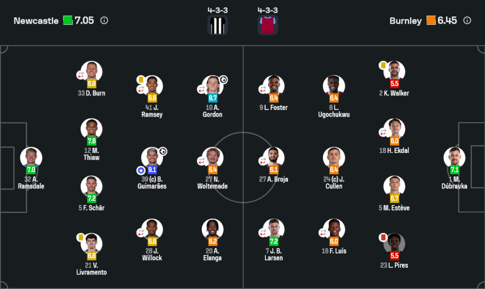 • 🔁 90+5′ – นิวคาสเซิ่ล ส่ง ซานโดร โตนาลี ลงมาช่วยปิดเกมแทน แรมซีย์ และ เบิร์นลี่ย์ส่ง มาร์คัส เอ็ดเวิร์ดส์ แทน เอ๊คดาล