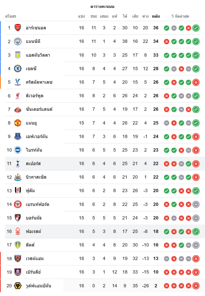 📈 สถานการณ์ในตารางคะแนนพรีเมียร์ลีก
