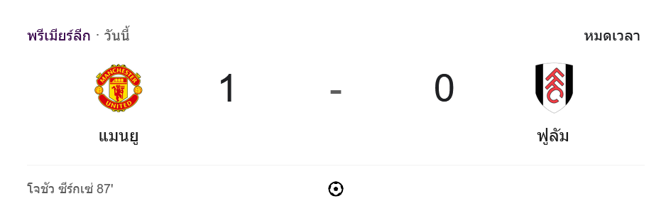 สรุปการแข่งขัน เกมนี้เต็มไปด้วยความเข้มข้นและโอกาสที่สูสีกันทั้งสองฝ่าย แต่จุดเปลี่ยนสำคัญเกิดขึ้นในนาทีที่ 87 เมื่อ โจชัว เซิร์กเซ่ ผู้เล่นของ แมนเชสเตอร์ ยูไนเต็ด ทำประตูสำคัญให้ทีมขึ้นนำ 1-0 แม้ว่า ฟูแล่ม จะพยายามบุกหนักในช่วงท้ายเกม แต่ไม่สามารถทำประตูตีเสมอได้ ทำให้จบเกมด้วยชัยชนะของ แมนเชสเตอร์ ยูไนเต็ด