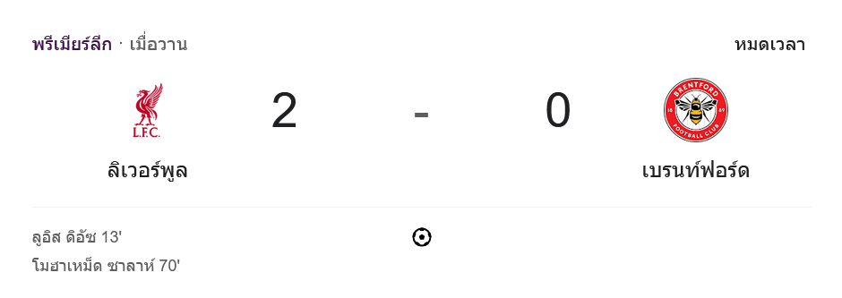 ไฮไลท์ฟุตบอลพรีเมียร์ลีก 2024 ลิเวอร์พูล 2-0 เบรนท์ฟอร์ด วันนี้ 26/8/67 – บ้านกีฬา (bankeela1.com)