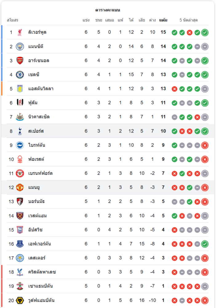 สถานการณ์ในตารางคะแนน: