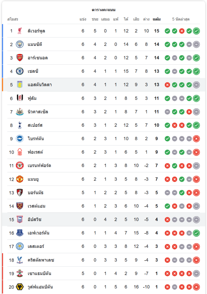 หลังจากผลการแข่งขันนี้ แอสตัน วิลล่า ยังคงอยู่อันดับที่ 5 ของตารางพรีเมียร์ลีก 2024 มี 13 คะแนนจากการลงสนาม 6 นัด ขณะที่ อิปสวิช ทาวน์ ยังคงอยู่อันดับที่ 15 มี 4 คะแนนจากการลงสนาม 6 นัด