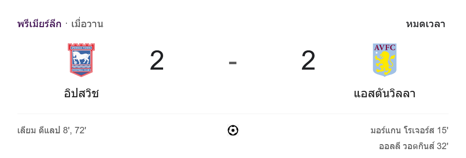 ไฮไลท์บอลพรีเมียร์ลีก 2024 อิปสวิช ทาวน์ 2-2 แอสตัน วิลล่า วันนี้ 30/9/67 – บ้านกีฬา (bankeela1.com)