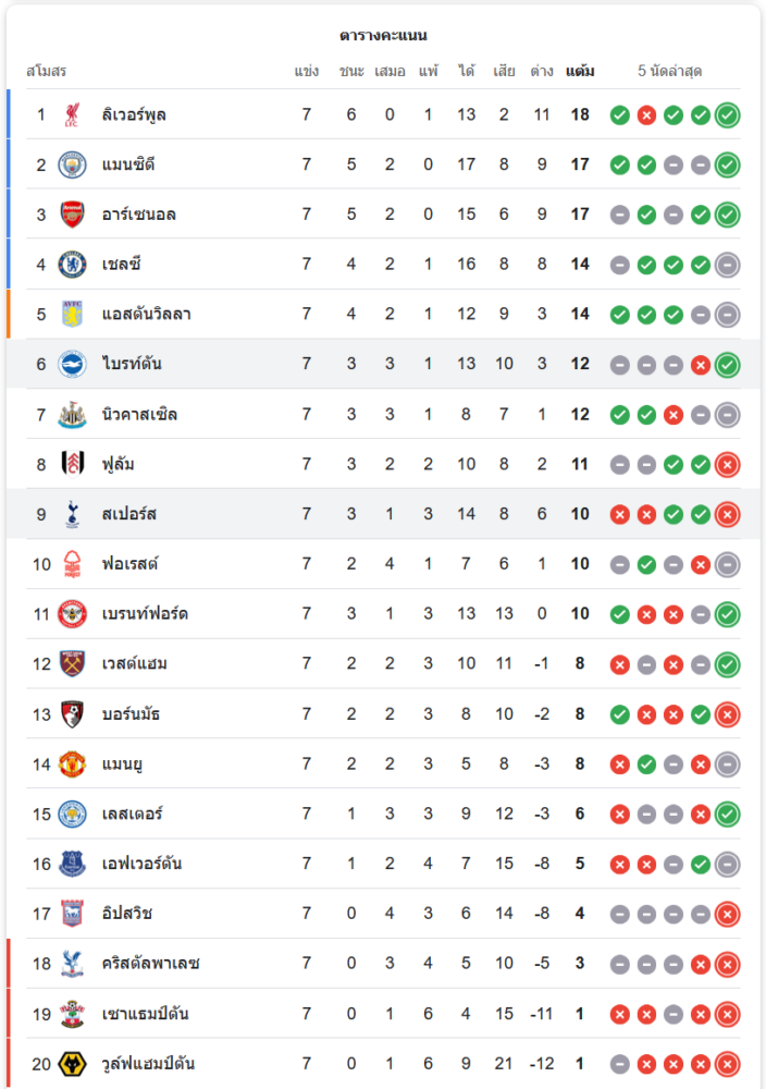 สถานการณ์ในตารางคะแนน