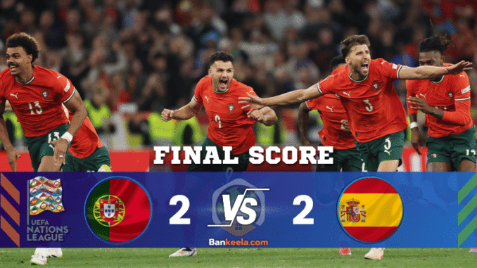 โปรตุเกสโชว์ความนิ่งยามกดดัน ด้านสเปนก็กระทิงไม่ลด แม้จะมีประตูนำถึงสองครั้งแต่สุดท้ายไม่อาจต้าน เจ้าภาพยูฟ่าเนชันส์ลีก หนนี้ไหว ผลบอลจบ 2‑2, จุดโทษชนะ 5‑3 โปรตุเกสส่วนเหนือพirlərคำว่าเบียดบังับได้ไม่ยาก คริสเตียโน่ โรนัลโด้ เจ้าของโกลล้มทั้งตายไปถึง 138 ตุง และแม้จะเจ็บจนต้องเปลี่ยนตัวออก เขายังติดอารมณ์สุดยิ่งใหญ่กับภาพน้ำตาแห่งชัยชนะ