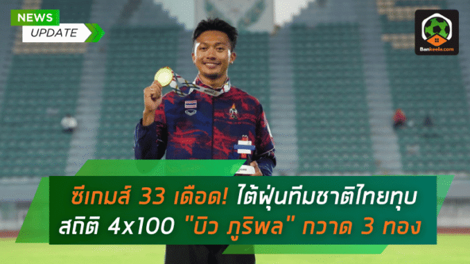 ทีมวิ่งผลัด 4×100 เมตรชายไทย ทำเวลา 38.28 วินาที เข้าเส้นชัยเป็นอันดับหนึ่ง ไม่ใช่แค่คว้าแชมป์ธรรมดา แต่เป็นการเปลี่ยนประวัติศาสตร์สถิติไทย สถิติซีเกมส์ และทำเวลาดีกว่าชั้นนำระดับเอเชีย ส่งให้ “บิว” บิว ภูริพล บุญสอน ผงาดคว้า “ทริปเปิลทอง” ในการแข่งซีเกมส์ครั้งเดียวครบทั้ง 3 อีเวนต์สปีด