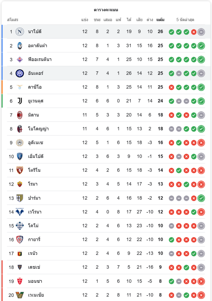 สถานการณ์ในตารางคะแนน