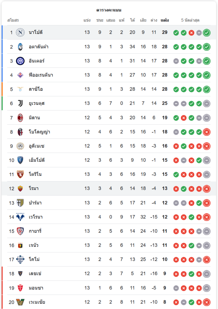 ชัยชนะครั้งนี้ช่วยให้นาโปลีเก็บ 29 คะแนนจาก 13 นัด รั้งจ่าฝูงของ ตารางบอล อย่างเหนียวแน่น ขณะที่โรม่าตกไปอยู่อันดับที่ 12 ด้วยคะแนน 13 แต้ม