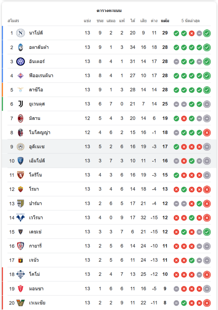 หลังเกมนี้ อูดิเนเซ่ยังคงอยู่ในอันดับ 9 มี 17 คะแนนจาก 13 นัด ส่วนเอ็มโปลีอยู่อันดับ 10 มี 16 คะแนน โดยทั้งสองทีมยังต้องเร่งเก็บแต้มในนัดถัดไปเพื่อขยับอันดับใน ตารางบอล ให้ดีขึ้น