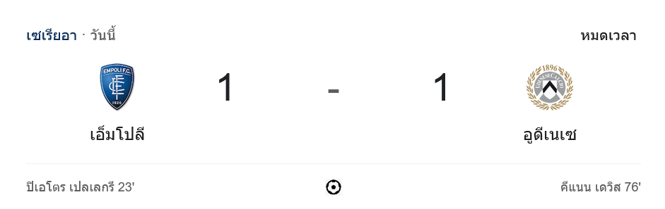 จาก : ผลบอลสด เซเรียอา 2024 ระหว่าง เอ็มโปลี 1-1 อูดิเนเซ่ วันนี้ 26/11/67 – บ้านกีฬา