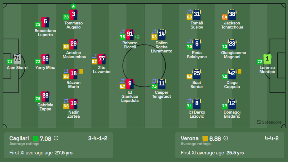 เวโรน่า เล่นในระบบ 4-4-2 ที่เน้นการตั้งรับและสวนกลับ แต่แนวรุกยังขาดความเฉียบคม ส่วนเกมรับมีจังหวะพลาดในช่วงสำคัญที่ทำให้เสียประตู