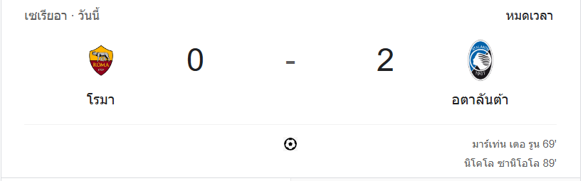 ผลบอลสด เซเรียอา 2024 ระหว่าง ทีม เอเอส โรม่า vs อตาลันต้า วันนี้ 03/12/67 ดูบอลย้อนหลัง คลิปไฮไลท์ ดูบอลเซเรียอา 2024