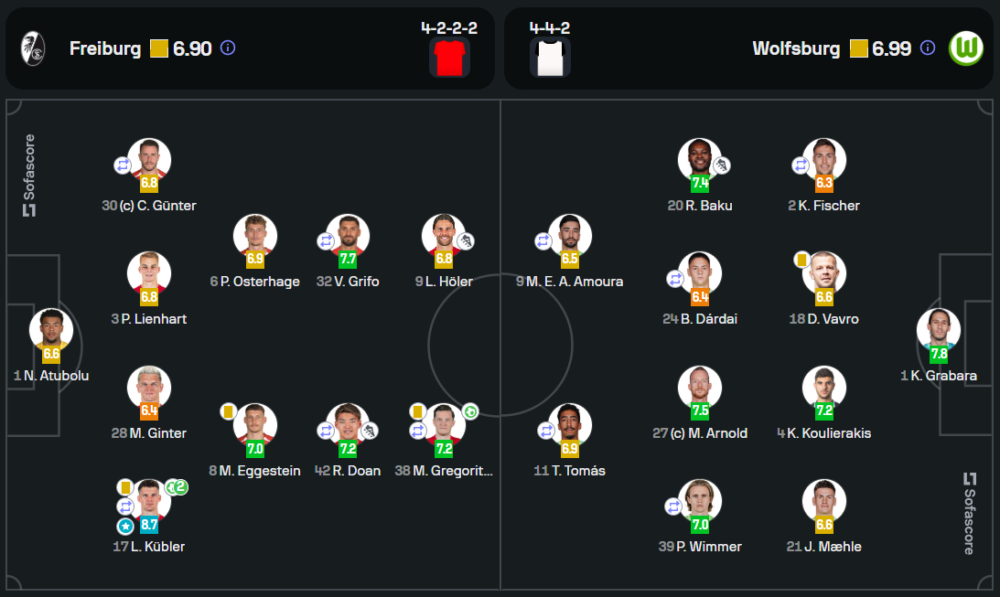 รายชื่อนักเตะตัวจริงและเปลี่ยนตัว