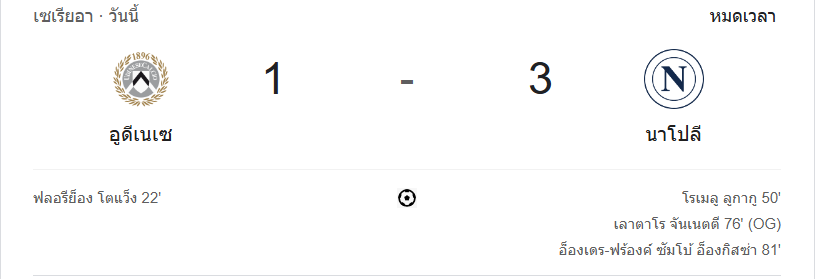 ผลบอลสด เซเรียอา 2024 ระหว่าง ทีม อูดิเนเซ่ vs นาโปลี วันนี้ 15/12/67 ดูบอลย้อนหลัง คลิปไฮไลท์ ดูบอลเซเรียอา 2024