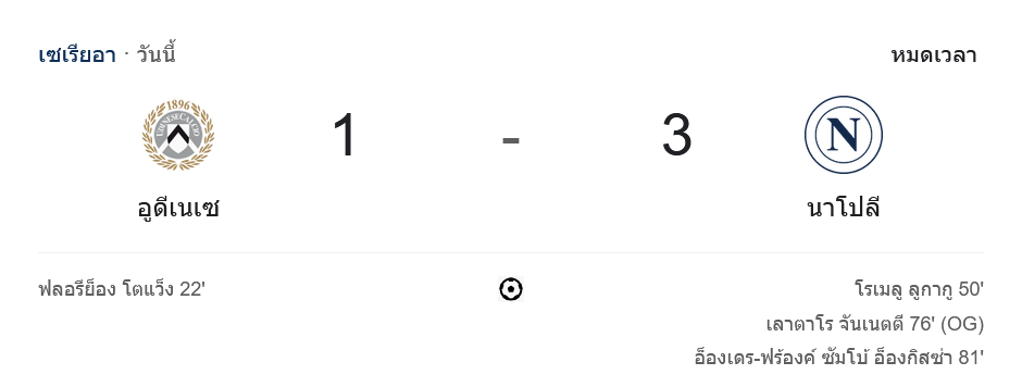 จาก : ผลบอลสด เซเรียอา 2024 ระหว่าง อูดิเนเซ่ 1-3 นาโปลี วันนี้ 15/12/67 – บ้านกีฬา