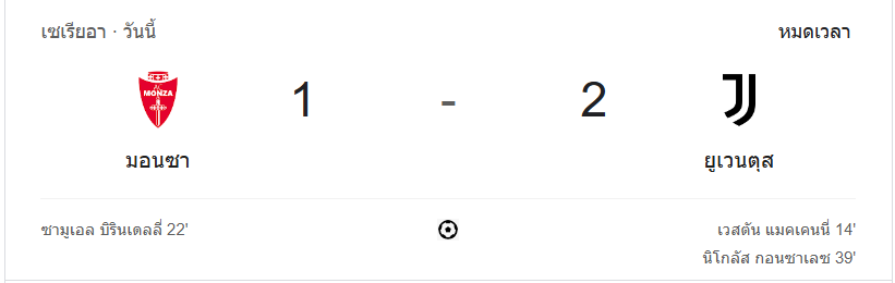 ผลบอลสด เซเรียอา 2024 ระหว่าง ทีม มอนซ่า 1912 vs ยูเวนตุส วันนี้ 23/12/67 ดูบอลย้อนหลัง คลิปไฮไลท์ ดูบอลเซเรียอา 2024