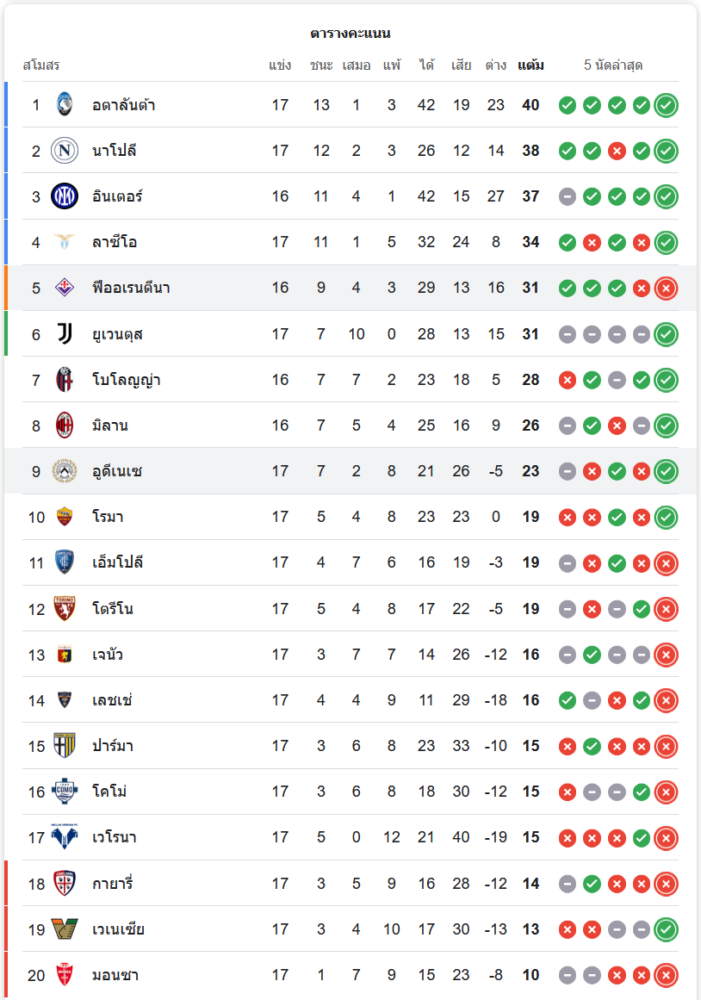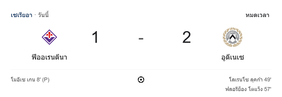 จาก : ผลบอลสด เซเรียอา 2024 ระหว่าง ฟิออเรนติน่า 1-2 อูดิเนเซ่ วันนี้ 24/12/67 – บ้านกีฬา