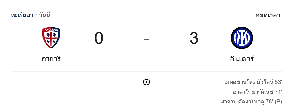 จาก : ผลบอลสด เซเรียอา 2024 ระหว่าง กาญารี่ 0-3 อินเตอร์ มิลาน วันนี้ 29/12/67 – บ้านกีฬา