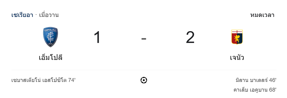 จาก : ผลบอลสด เซเรียอา 2024 ระหว่าง เอ็มโปลี 1-2 เจนัว วันนี้ 28/12/67 – บ้านกีฬา