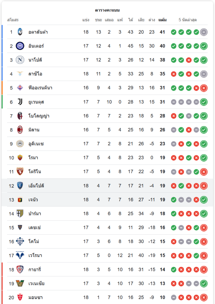 เจนัวเก็บเพิ่ม 3 คะแนน ขยับขึ้นมามี 19 คะแนน เท่ากับเอ็มโปลี แต่ยังต้องทำงานหนักต่อไปในเกมหน้า