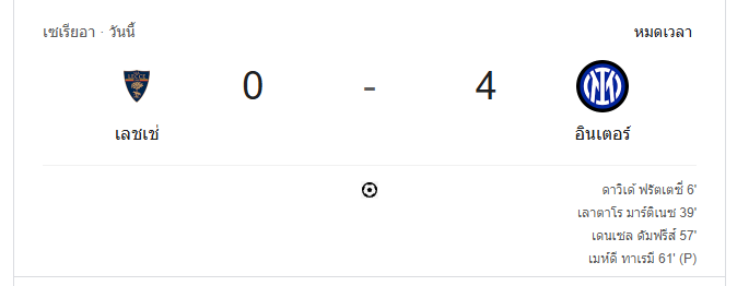 ผลบอลสด เซเรียอา 2024 ระหว่าง ทีม เลชเช่ vs อินเตอร์ มิลาน วันนี้ 27/1/68 ดูบอลย้อนหลัง คลิปไฮไลท์ ดูบอลเซเรียอา 2024