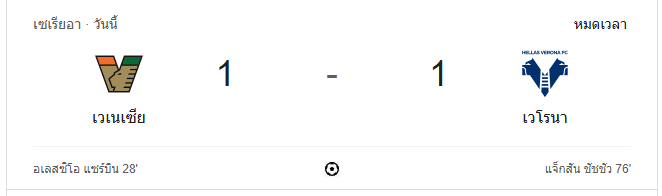 นาทีที่ 94: กรรมการเป่านกหวีดจบเกม เวเนเซียและเวโรน่าเสมอกัน 1-1 ในเกมที่ทั้งสองทีมสู้กันอย่างดุเดือด
