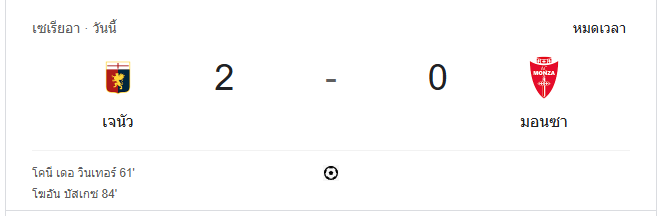 นาทีที่ 95: กรรมการเป่านกหวีดจบเกม เจนัวเอาชนะมอนซา 2-0 ในเกมที่พวกเขาคุมเกมได้ดีทั้งในแนวรุกและแนวรับ