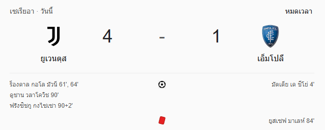 นาทีที่ 95: กรรมการเป่านกหวีดจบเกม ยูเวนตุสเอาชนะเอ็มโปลี 4-1