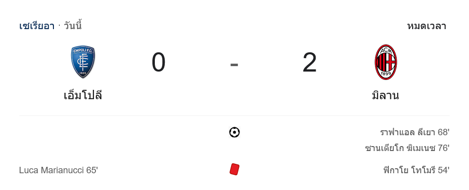 จาก : ผลบอลสด เซเรียอา 2024 ระหว่าง เอ็มโปลี 0-2 เอซี มิลาน วันนี้ 9/2/68 – บ้านกีฬา