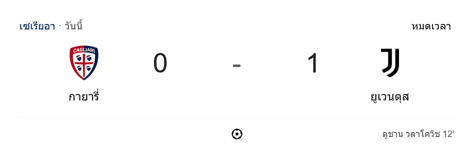 บ้านผลบอล สรุปหลังเกม ยูเวนตุสบุกเชือดกาญารี่ 1-0 วลาโฮวิชซัดชัย พาทีมลุ้นพื้นที่ยุโรปต่อ