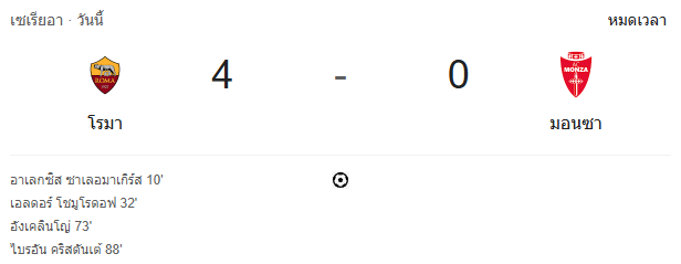 - นาทีที่ 47 กรรมการเป่าหมดครึ่งแรก โรมา นำ มอนซ่า 2-0