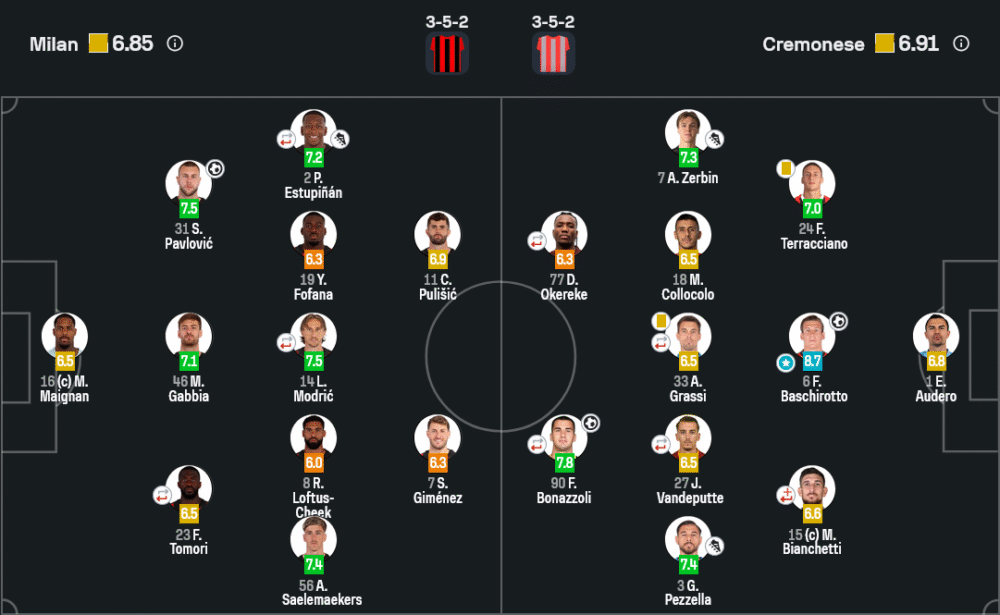 จากมุมมอง วิเคราะห์บอล เกมนี้ มิลานใช้รูปแบบ 3-5-2 ที่เน้นครองบอลและการต่อเกมจากแดนกลาง โมดริชคุมจังหวะได้ดี แต่การจบสกอร์ยังไร้ความคม แม้จะครองบอล 64% ยิงถึง 24 ครั้ง แต่เจาะแนวรับของเครโมเนเซ่ไม่ได้ เครโมเนเซ่เลือกแท็กติกตั้งรับลึกแล้วรอสวนกลับ ความเหนียวแน่นของบาสคิร็อตโต้ และความเด็ดขาดของโบนัซโซลี คือกุญแจสำคัญที่ทำให้พวกเขาคว้าชัยได้เหนือคู่แข่งที่เหนือกว่าทุกด้าน