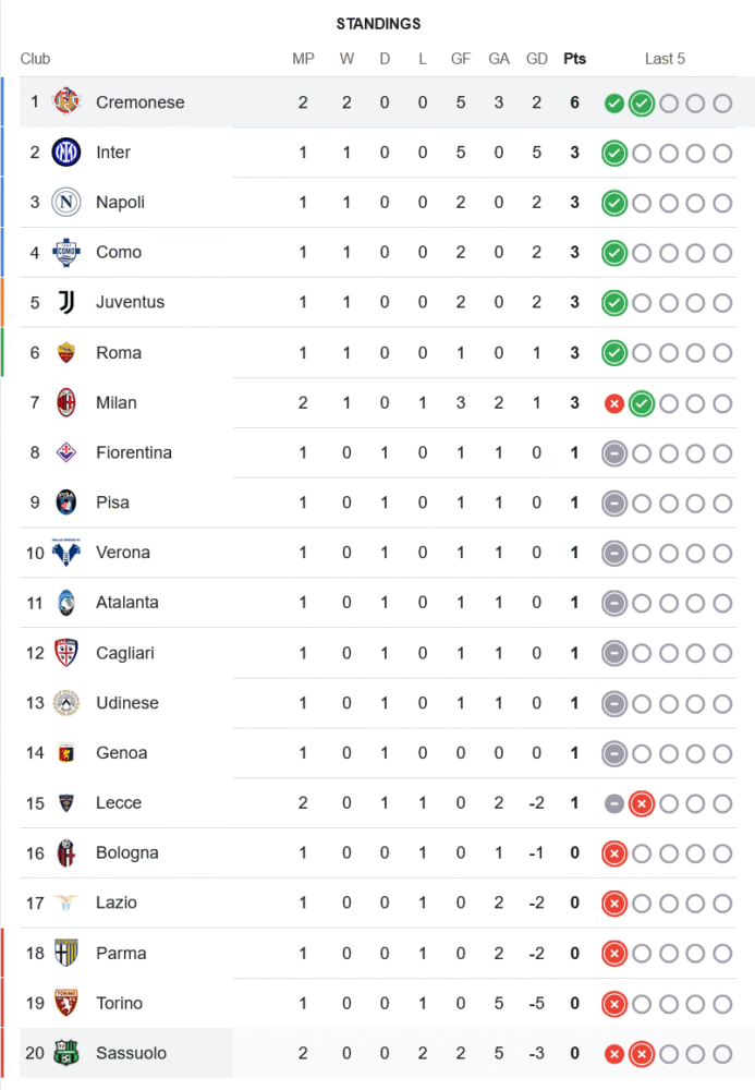 ตามหน้า ตารางบอล เครโมเนเซ่มีคิวเปิดบ้านเจอปาร์ม่าในวันที่ 21 กันยายน และก่อนหน้านั้นบุกไปเยือนเวโรน่า 15 กันยายน หากยังรักษาฟอร์มนี้มีโอกาสยืนจ่าฝูงต่อ ส่วนซัสเซาโล่หนักไม่แพ้กันเพราะต้องเปิดบ้านรับลาซิโอ 14 กันยายน ก่อนยกพลเยือนอินเตอร์ 21 กันยายน เกมเหล่านี้คือบทพิสูจน์ว่าใครจะเอาตัวรอดได้มากกว่ากัน