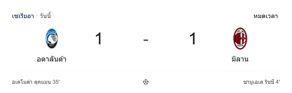 ⚽ ครึ่งแรก: มิลานเปิดเกมไว แต่อตาลันต้าตามทัน