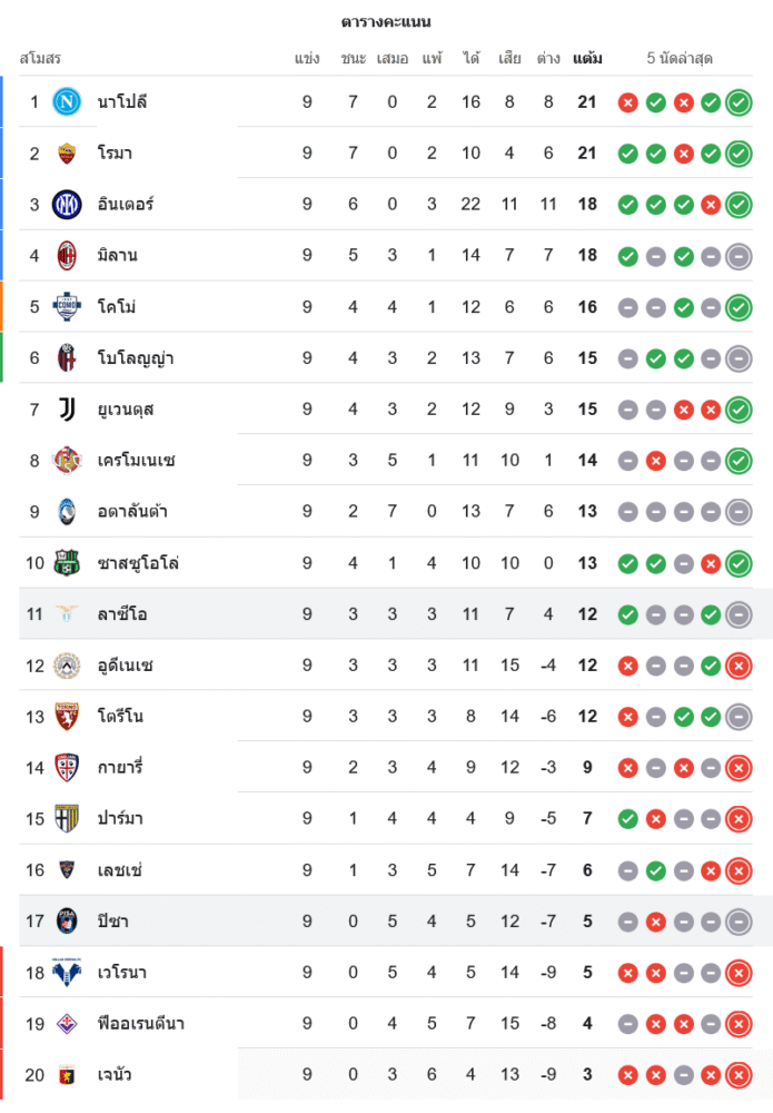 ในมุมมอง ตารางบอล นัดต่อไป ปิซ่ามีคิวบุกเยือนโตริโน วันที่ 2 พฤศจิกายน ก่อนกลับมาเปิดบ้านพบเครโมเนเซ่ 8 พฤศจิกายน ส่วนลาซิโอ้ต้องเตรียมตัวรับศึกหนักสองนัดติด พบกาญารี่ 4 พฤศจิกายน และตามด้วยการเจออินเตอร์ มิลาน 10 พฤศจิกายน ถือเป็นโปรแกรมโหดที่ซาร์รี่ต้องเร่งหาจุดเปลี่ยน