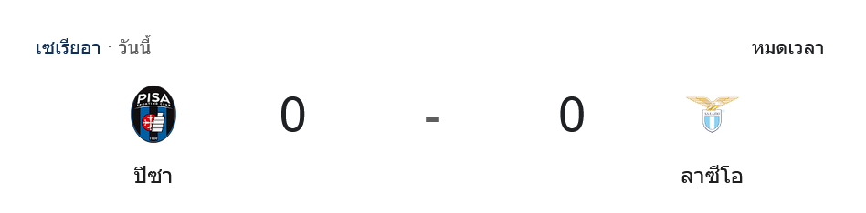 บ้านกีฬา รายงาน ผลบอลสด ศึกกัลโช่ เซเรียอา ที่สนามอารีนา การิบัลดี เกมนี้จบลงแบบสุดตึงระหว่าง ปิซ่า ทีมท้ายตารางที่เปิดบ้านรับการมาเยือนของ ลาซิโอ้ ยักษ์ใหญ่จากกรุงโรม ผลจบเสมอ 0-0 แบบไม่มีฝั่งใดเจาะตาข่ายได้ แต่ต้องยกเครดิตให้ผู้รักษาประตูชาวโครแอต อาเดรียน เซ็มเปอร์ ที่โชว์ฟอร์มหนึบระดับพระกาฬ เซฟลูกยิงสำคัญหลายจังหวะช่วยให้ทีมรอดพ้นความพ่ายแพ้ เก็บแต้มที่มีค่ามหาศาลในบ้านได้สำเร็จ