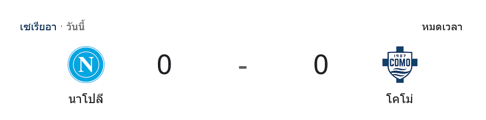 ศึกฟุตบอล กัลโช่ เซเรียอา อิตาลี คู่ใหญ่ประจำสัปดาห์ที่สนามซานเปาโล ปรากฏว่า นาโปลี เจ้าบ้านไม่สามารถเจาะแนวรับของ โคโม ทีมน้องใหม่จอมแกร่งได้ จบเกมด้วยผล เสมอ 0-0 แบ่งแต้มกันไปสุดเข้มข้น โดยเกมนี้มีจังหวะลุ้นเพียบตลอดทั้ง 90 นาที และต้องยกเครดิตให้กับนายประตูจอมหนึบของทีมเยือนที่ทำผลงานระดับเทพ บ้านกีฬา ขอสรุปเกมนี้พร้อม ผลบอลสด และบทวิเคราะห์แบบจัดเต็ม