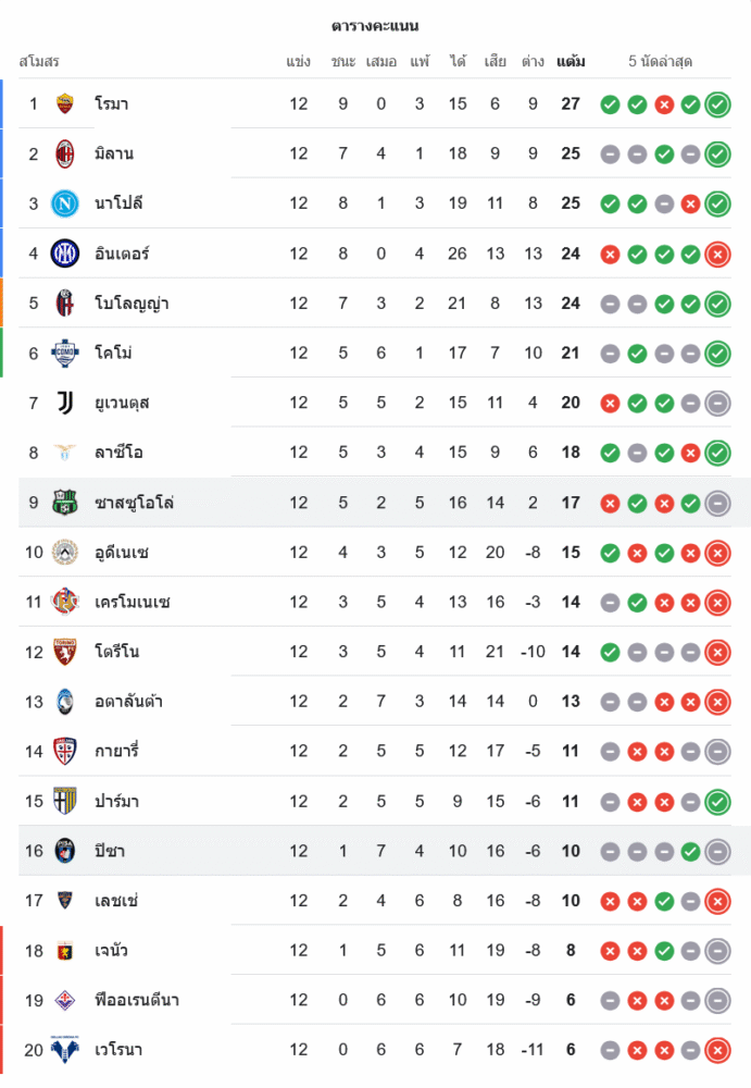 📊 สถานการณ์ในตารางคะแนนเซเรียอา