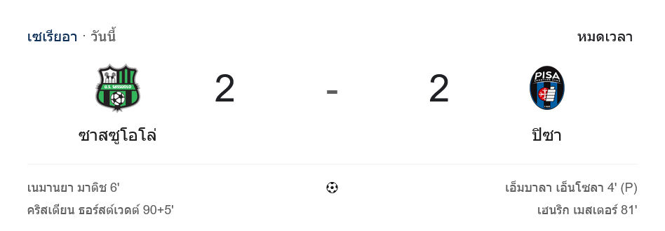 จาก : ผลบอลสด เซเรียอา ระหว่าง ซัสเซาโล่ 2-2 ปิซ่า วันนี้ 25/11/68 – บ้านกีฬา