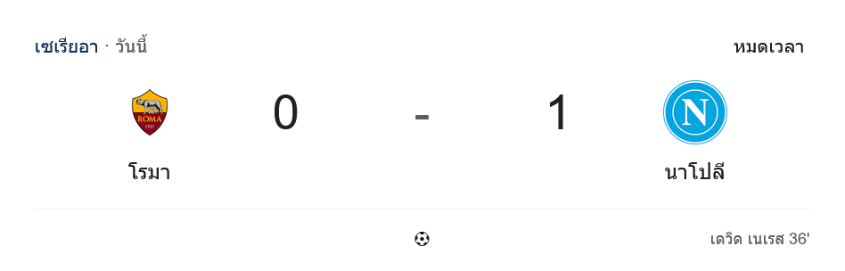 จาก : ผลบอลสด เซเรียอา ระหว่าง เอเอส โรม่า 0-1 นาโปลี วันนี้ 1/12/68 – บ้านกีฬา