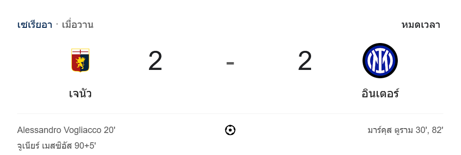 การแข่งขัน เซเรียอา 2024 นัดเปิดฤดูกาลระหว่างทีม เจนัว และ อินเตอร์ มิลาน จบลงด้วยผลเสมอ 2-2 ทำให้ทั้งสองทีมเก็บแต้มแรกของฤดูกาลไปอย่างสมศักดิ์ศรี