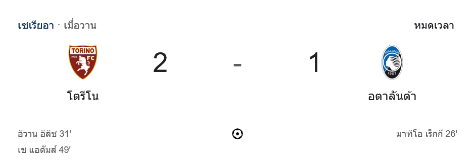 ไฮไลท์ฟุตบอลเซเรียอา 2024 โตริโน่ 2-1 อตาลันต้า วันนี้ 26/8/67 – บ้านกีฬา (bankeela1.com)