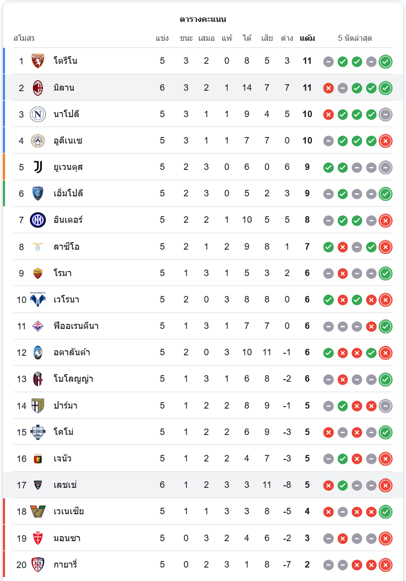 สถานการณ์ในตารางคะแนน: