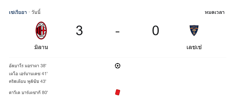 ผลบอลเซเรียอา 2024 ระหว่าง ทีมเอซี มิลาน vs ทีมเลชเช่ วันนี้ 28/9/67 ดูบอลย้อนหลัง คลิปไฮไลท์ ดูบอลเซเรียอา 2024