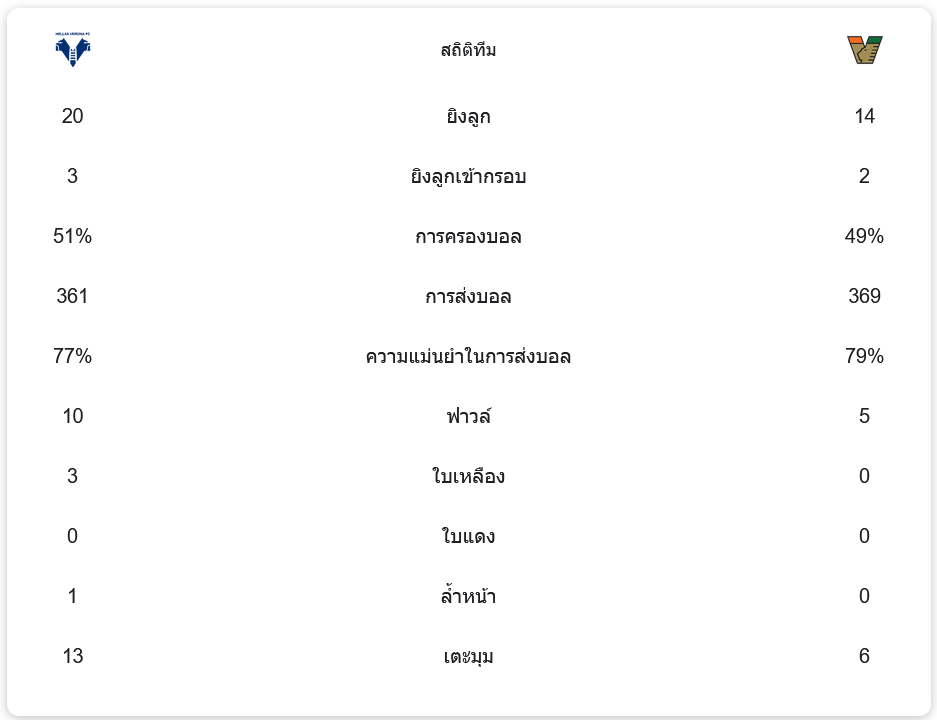 - นาทีที่ 90+3: G. Magnani ทำฟาวล์และได้รับใบเหลือง