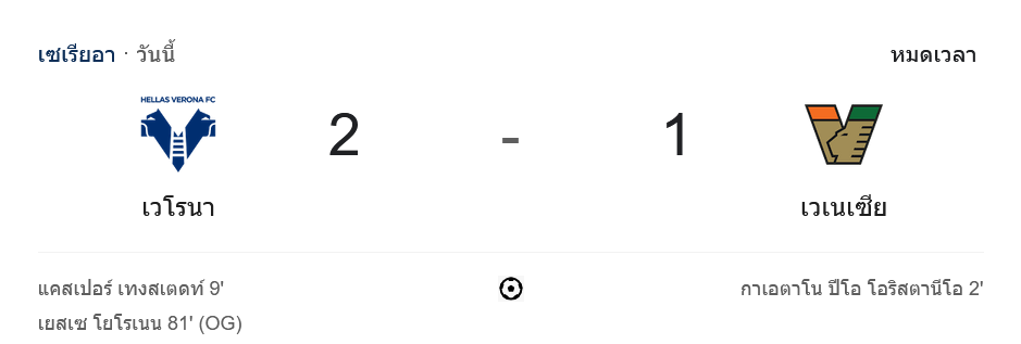 ผลบอลเซเรียอา 2024 ระหว่าง ทีมเวโรน่า vs ทีมเอซี เวนิช วันนี้ 4/10/67 ดูบอลย้อนหลัง คลิปไฮไลท์ ดูบอลเซเรียอา 2024