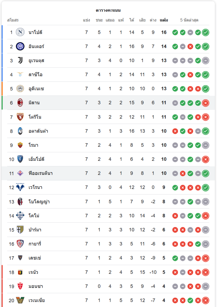สถานการณ์ในตารางคะแนน